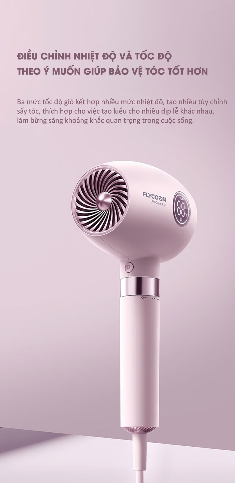 Máy sấy tóc Flyco FH6368 hiện đại với khóa điều chỉnh mức nhiệt thông minh cùng với màn hình LED hiển thị nhiệt độ giúp bạn dễ dàng theo dõi hiệu chỉnh mức nhiệt mà bạn mong muốn. Thiết kế tích hợp công nghệ tạo ion âm cùng 3 mức gió giúp bảo vệ mái tóc không còn xơ rối dưỡng tóc bóng mượt. BH 1 năm