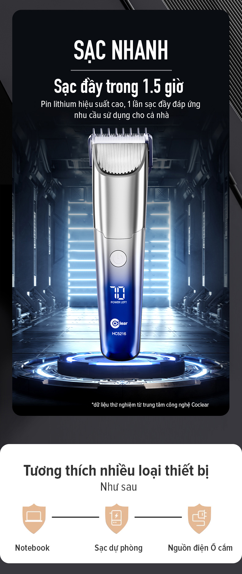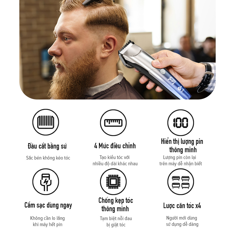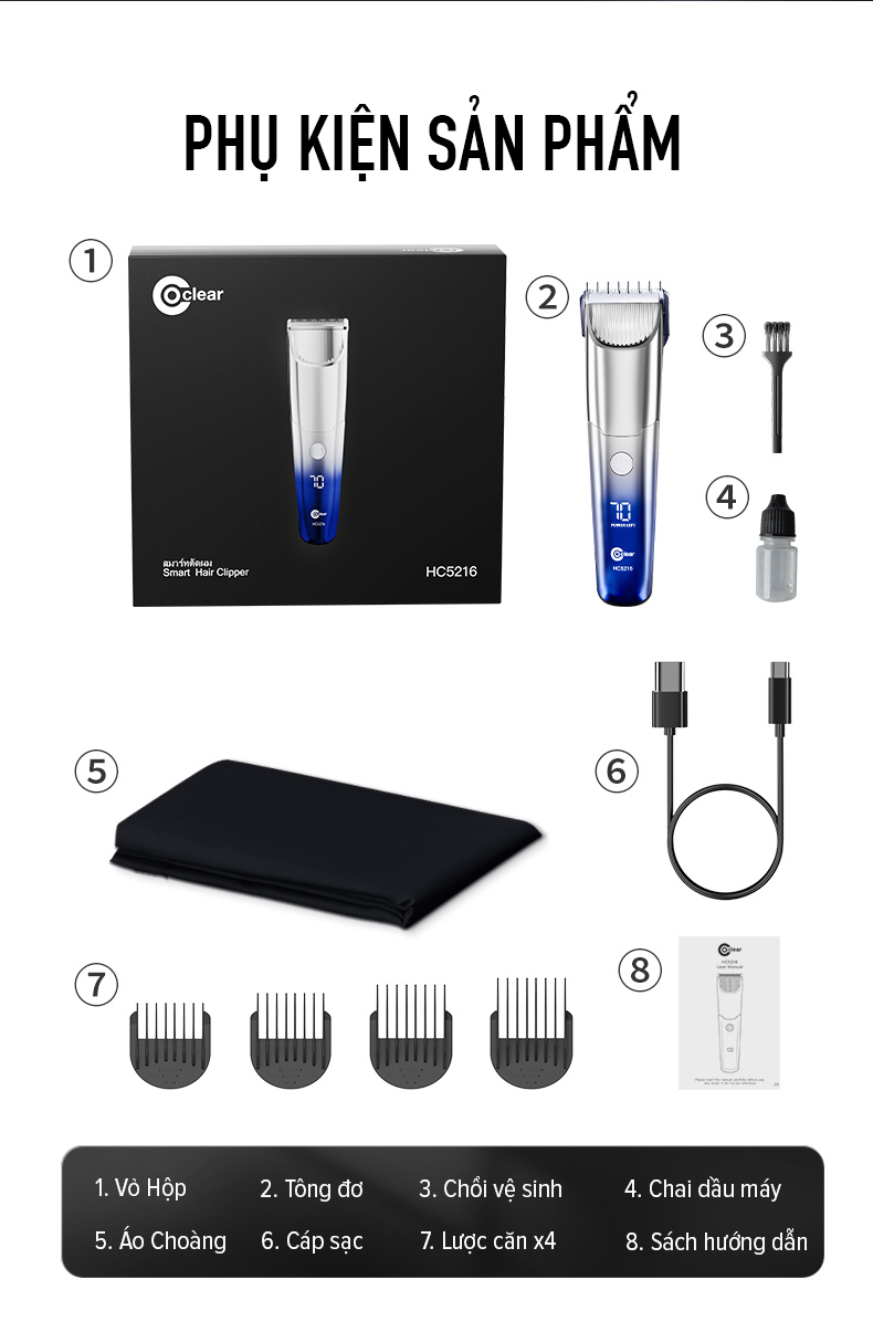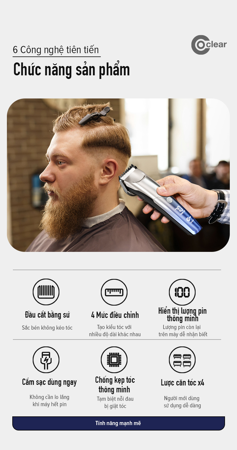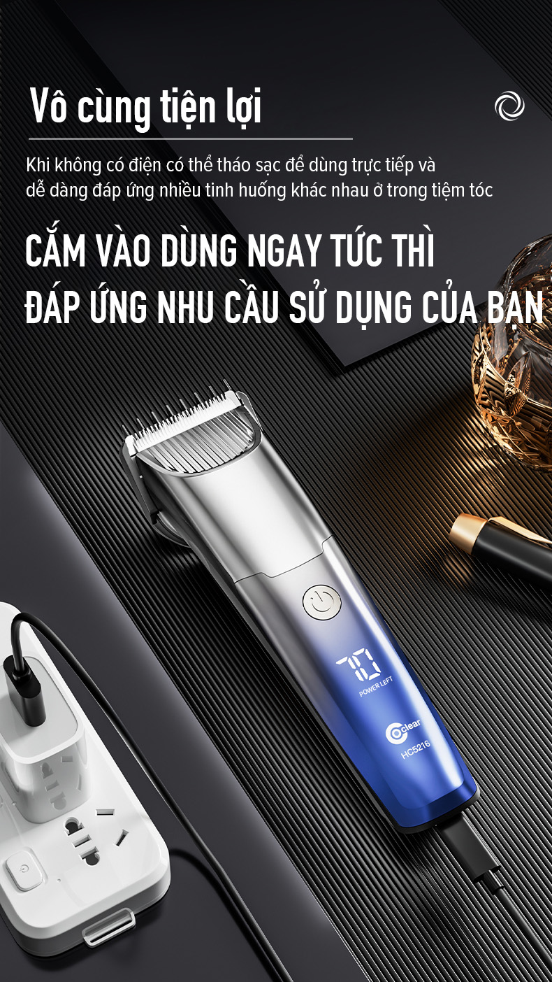 Tông đơ cắt tóc Coclear HC5210, một tông đơ cắt tóc dành cho tiệm hớt tóc, sạc USB/Type-C, có thể sạc và cắm chạy trực tiếp. Thiết kế thân máy đơn giản và thời trang, động cơ mạnh mẽ, lưỡi dao gốm sứ sắc bén thích hợp cắt tóc cho mọi lứa tuổi. Màn hình LED hiện thị, khóa du lịch, chống kẹp tóc thông minh tạo nên ưu điểm vượt trội hơn.
